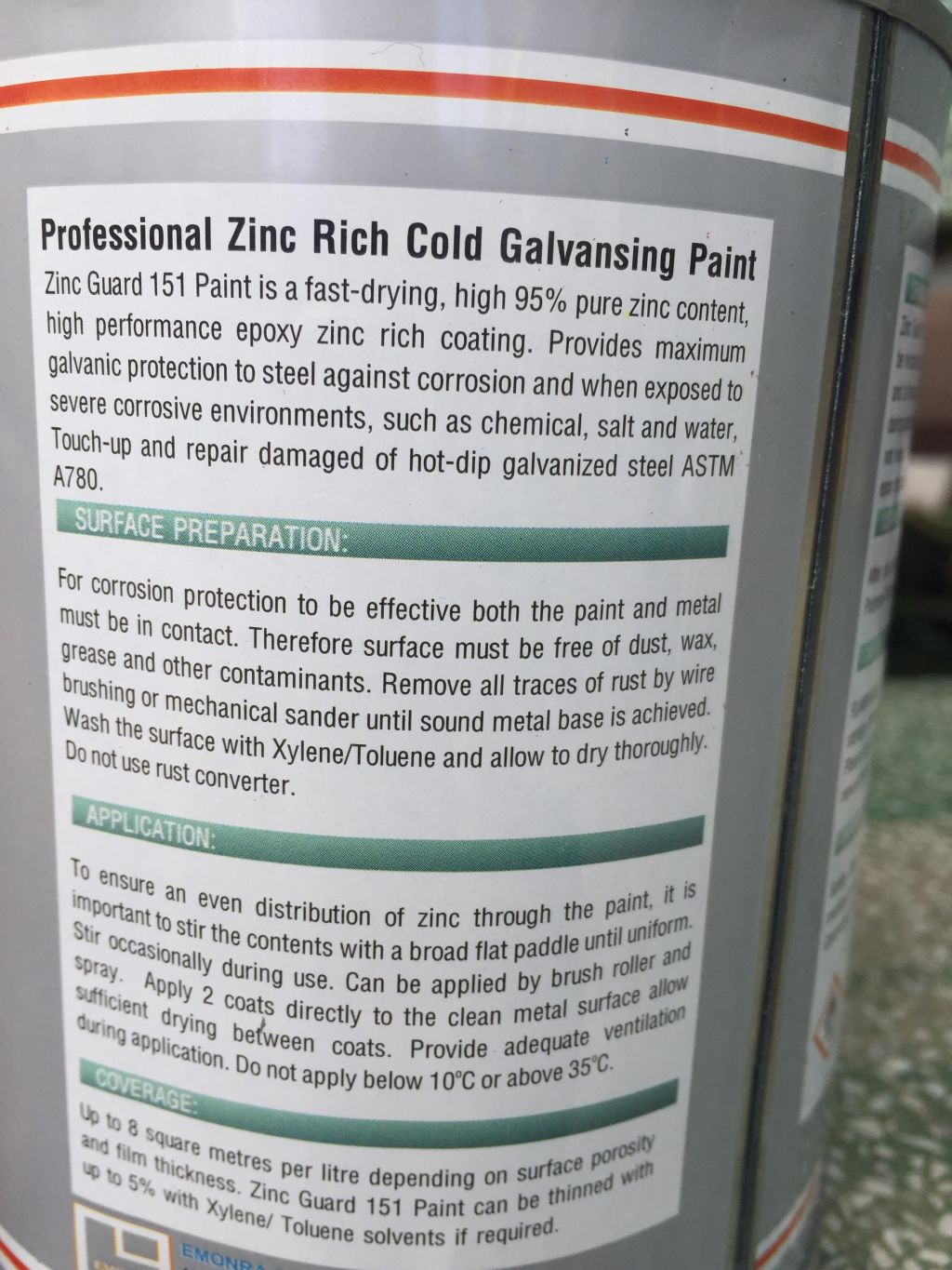 ZG151 (Zinc Guard 151) là sơn mạ kẽm lạnh dạng lon nhỏ (dùng quét, lăn hay súng phun) để lót hay phủ lên kim loại ở điều kiện bình thường như các loại sơn truyền thống khác. Sau khi khô kim loại được bảo vệ bởi một lớp mạ kẽm lạnh có hàm lượng kẽm đến 95% cung cấp chức năng chống ăn mòn điện hoá. Được ứng dụng rộng rãi trong việc hàn cắt kim loại, bù kẽm trong quá trình mạ kẽm nhúng nóng, sửa chữa lớp mạ kẽm, bảo vệ lớp mạ kẽm, tái tạo bề mặt kim loại đã mạ kẽm.